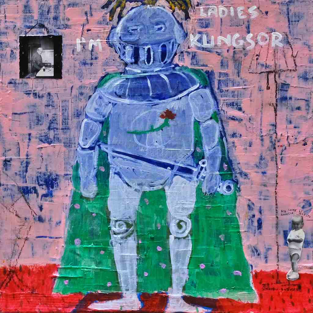Oil, acrylic, and collage on canvas – 30×30 cm