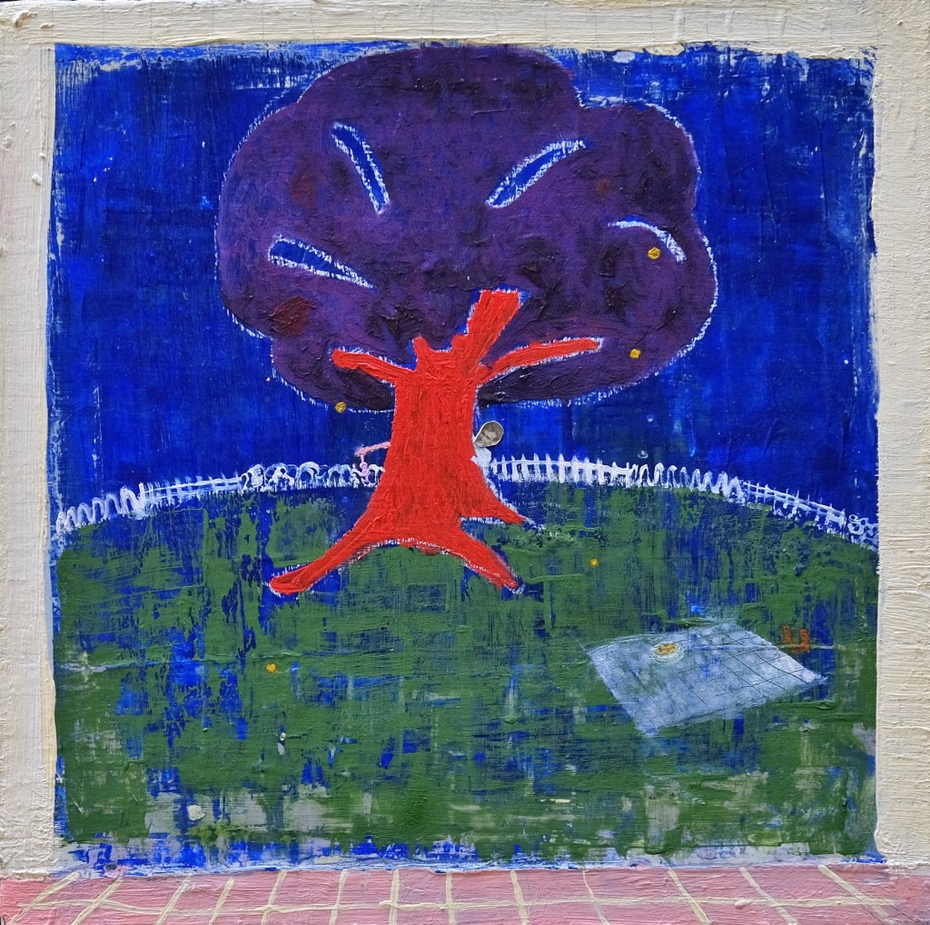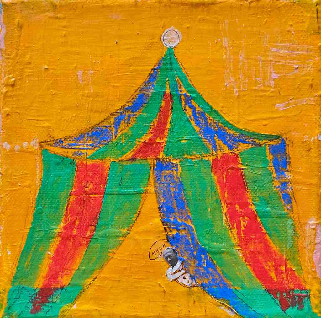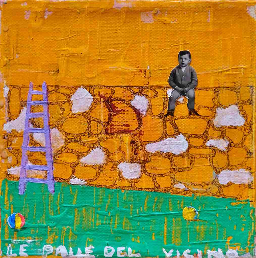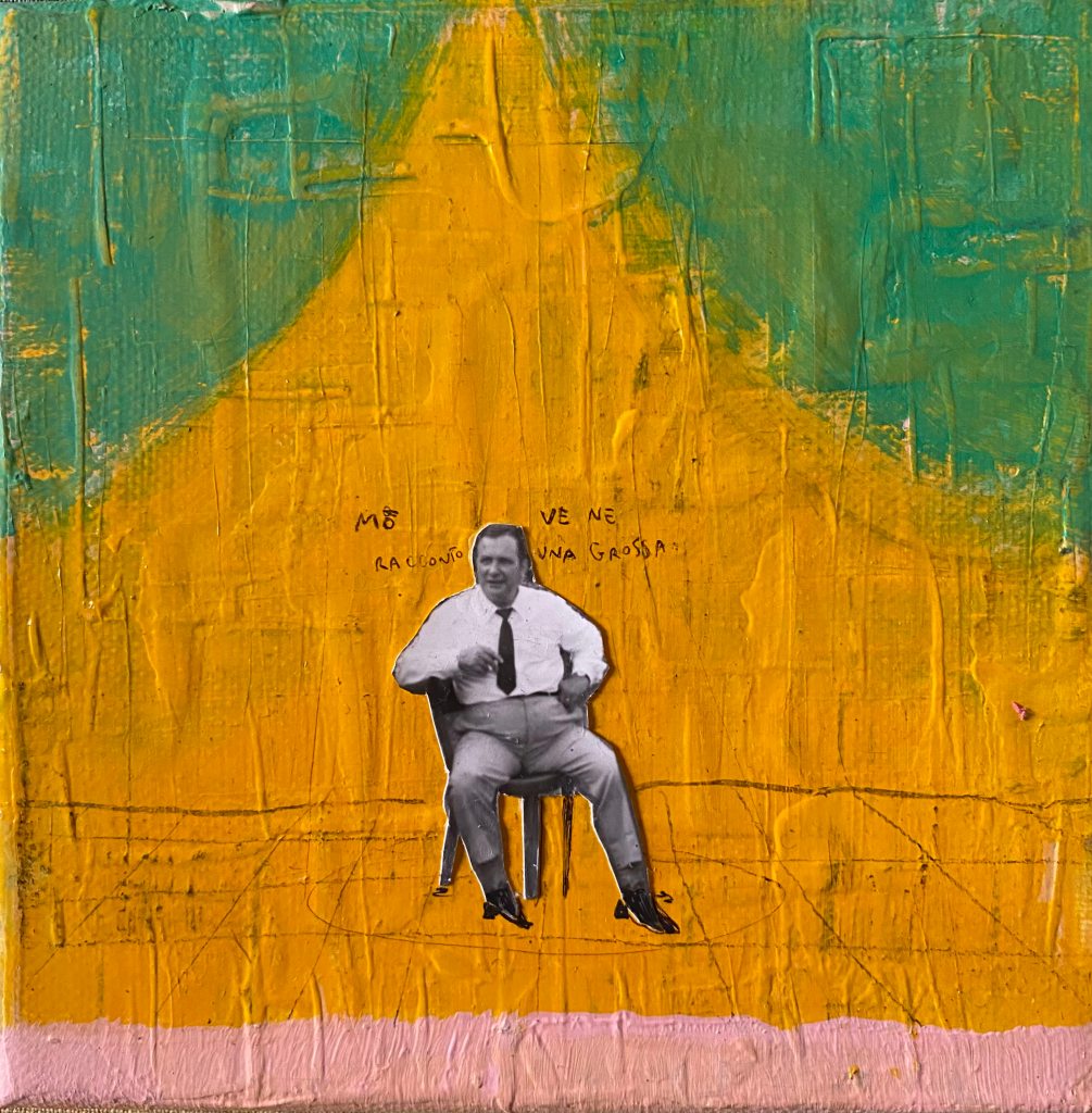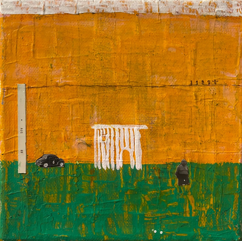 Acrylic, oil, and collage on canvas – 15×15 cm