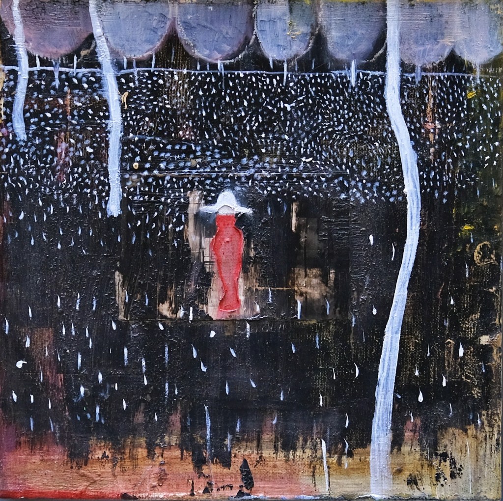 Acrylic, oil, and collage on canvas – 30×30 cm