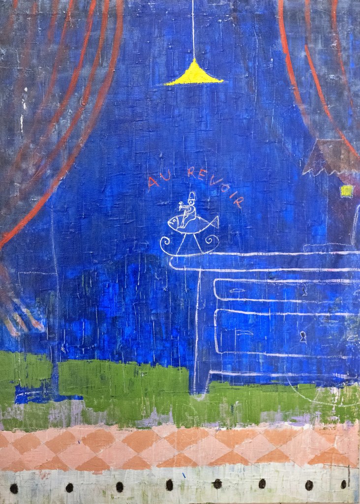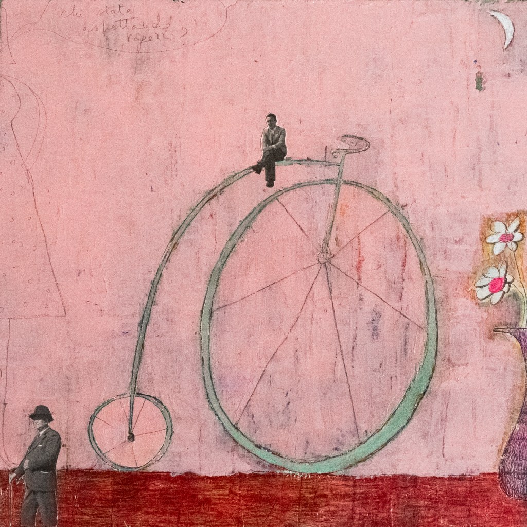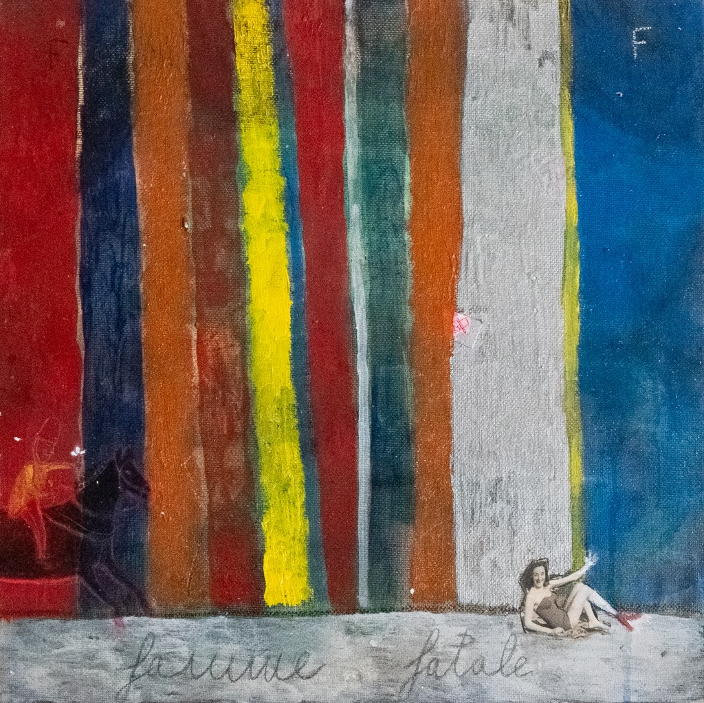Acrylic, oil, and collage on canvas – 30×30 cm