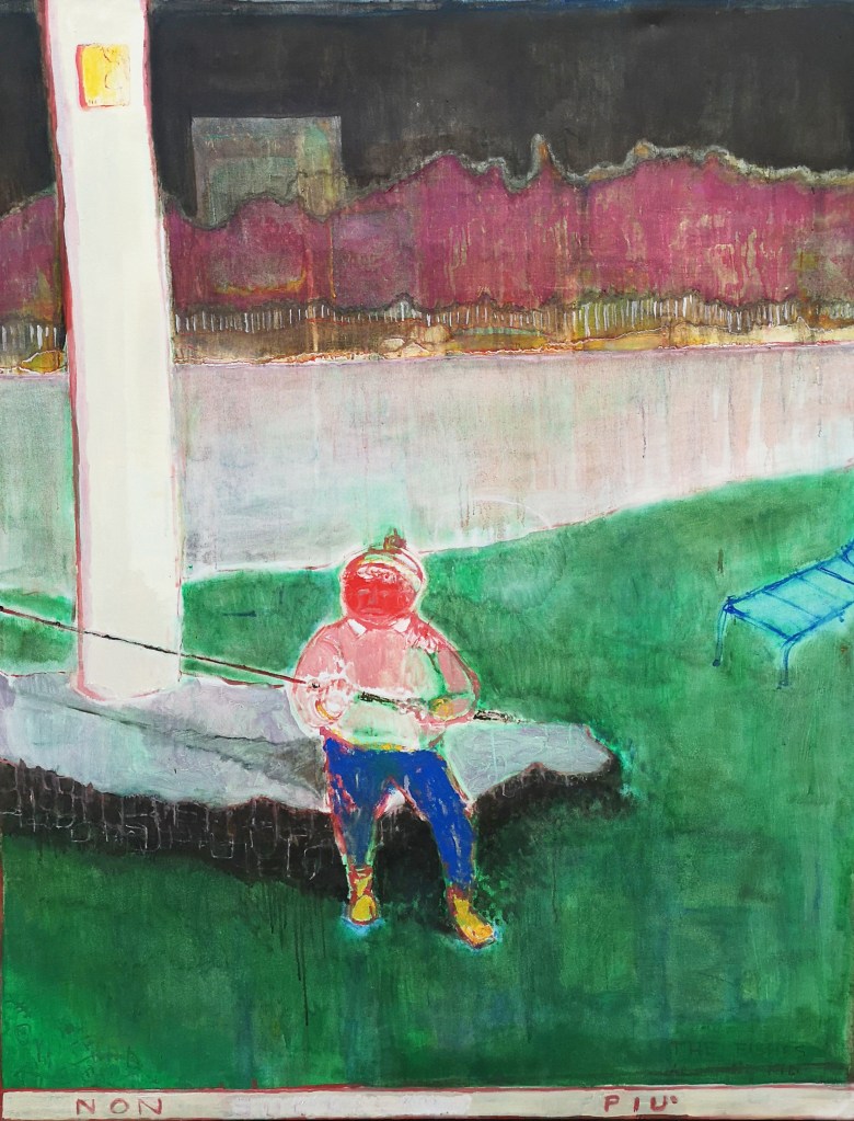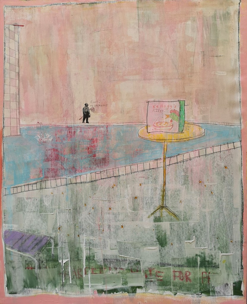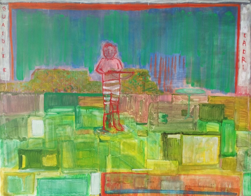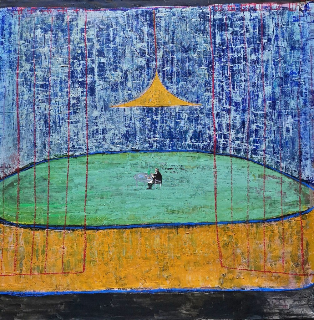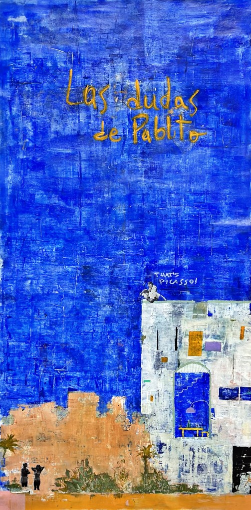 Acrylic, oil, and collage on canvas – 120×150 cm