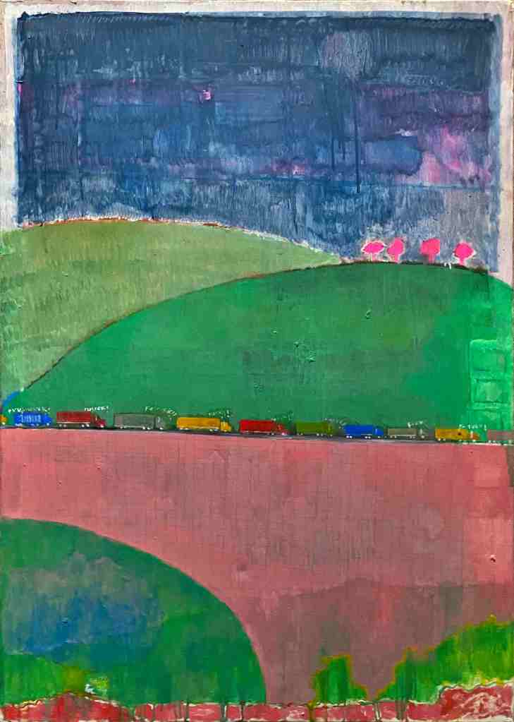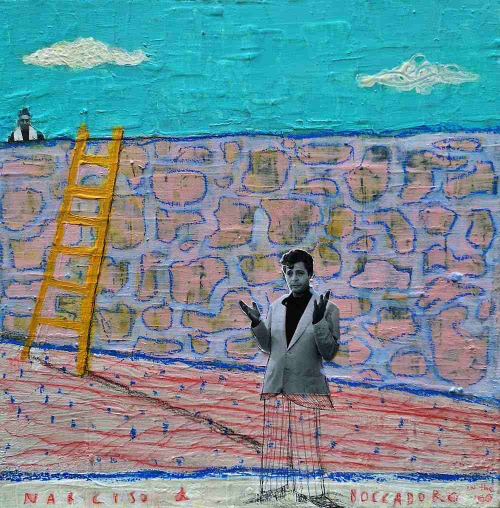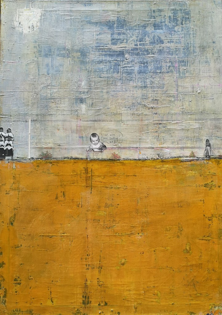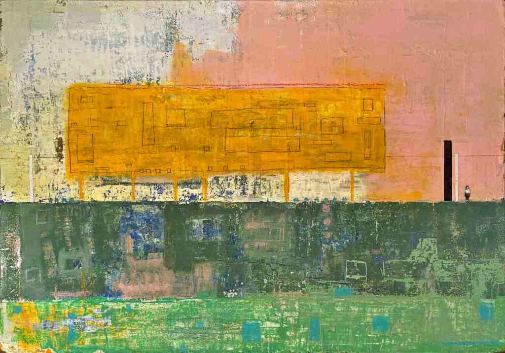 Acrylic and collage on wood panel – 60×100 cm