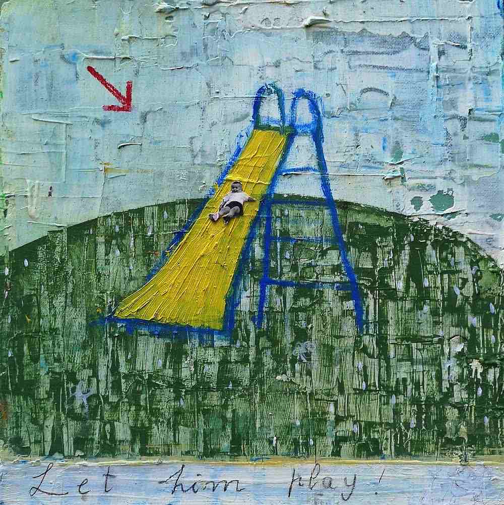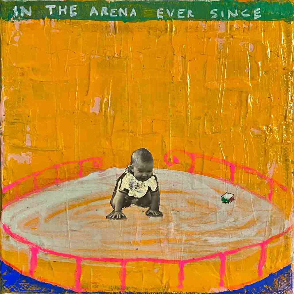 Acrylic, oil, and collage on canvas – 15×15 cm